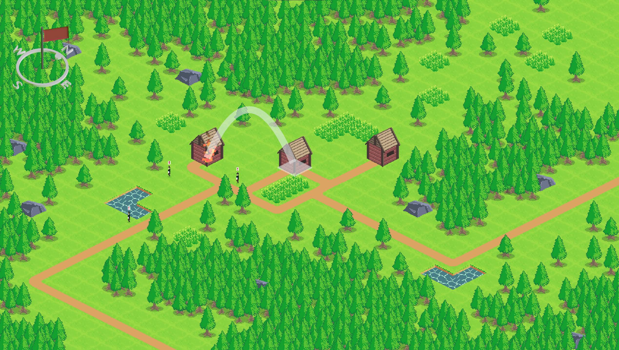 When starting a level, click on any flammable tile to start your fire. After your fire is going, you can launch fireballs to spread the fire. Your goal is to destroy all the buildings in a level. Villagers will hurry to water and try to put your fire out, try distract them or take them out. Make sure to keep an eye on your fire! If it goes out, you'll have restart the level.